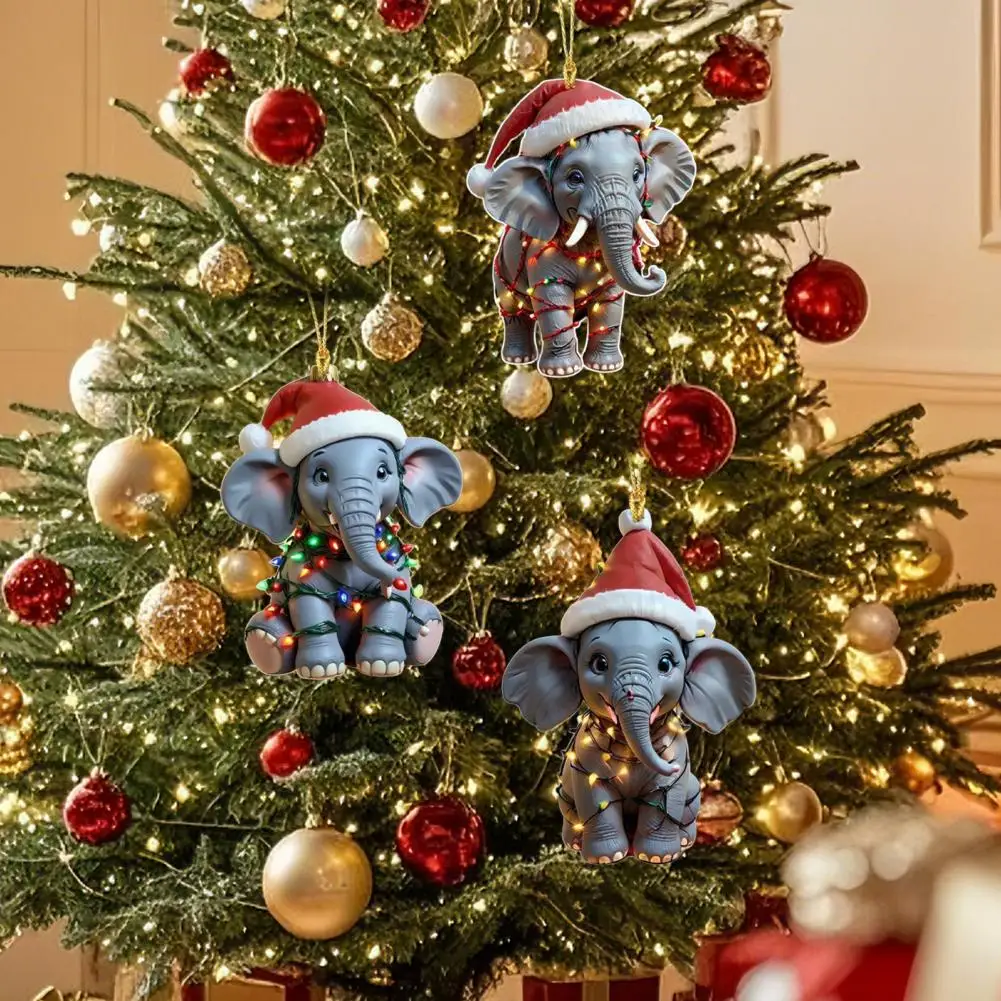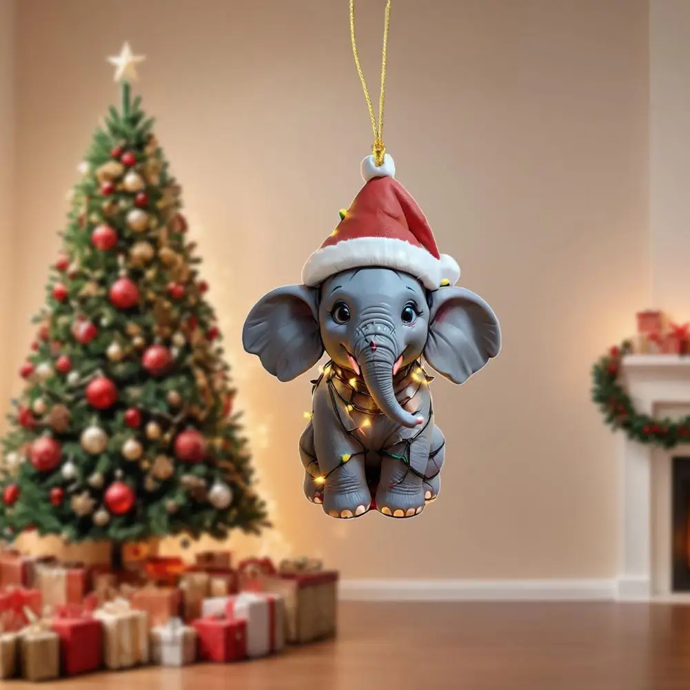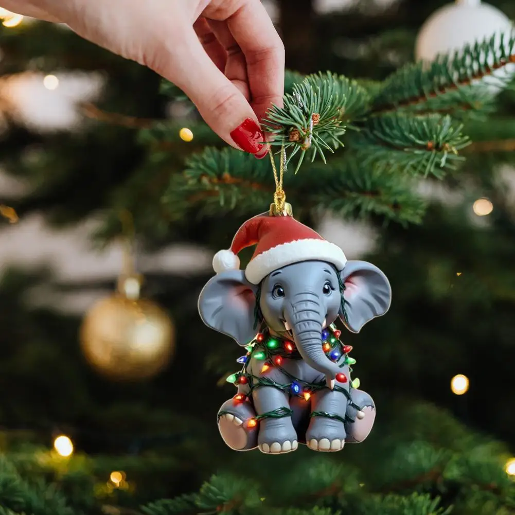 Elephant Christmas Ornament 2D Flat Acrylic Elephant Christmas Tree Ornament Gifts for Animal Lovers Women Girls